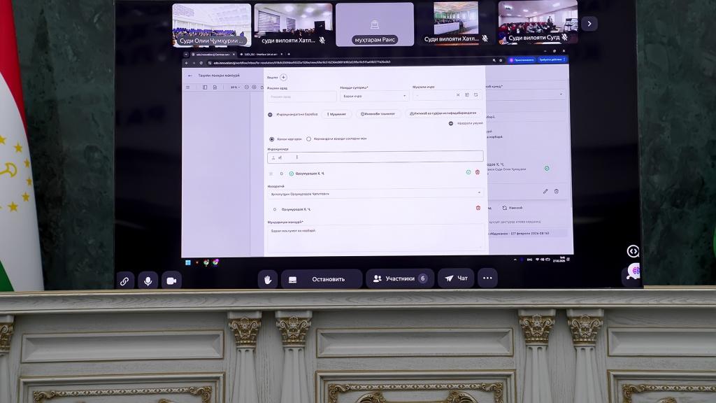 Онлайн-семинар открыл заместитель Председателя Верховного Суда Тағозода А.С., который отметил необходимость обязательного перехода на ведение документооборота в электронной форме посредством «Единой системы электронного документооборота». Он призвал участников в дальнейшем организовать работу с документами через данную программу и постепенно отказаться от бумажных носителей.